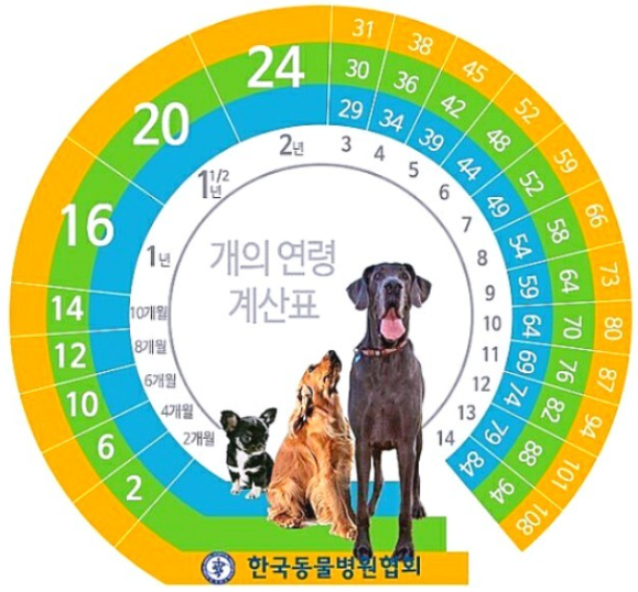 강아지 나이 계산표[출처: 한국동물병원 협회] 강아지 나이 계산기