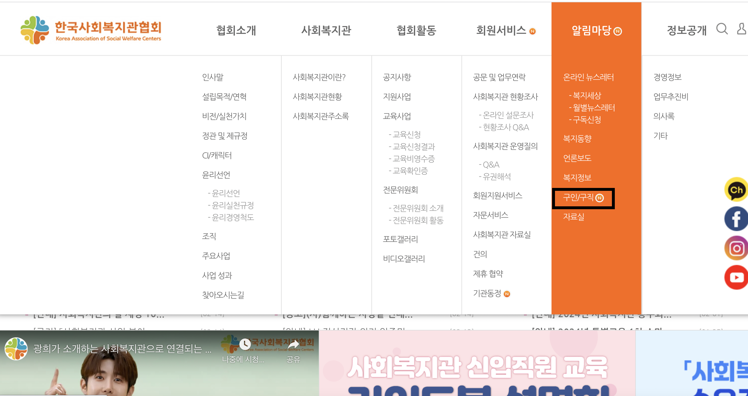 - 한국사회복지관협회(https://kaswc.or.kr) : 알림마당 - 구인구직